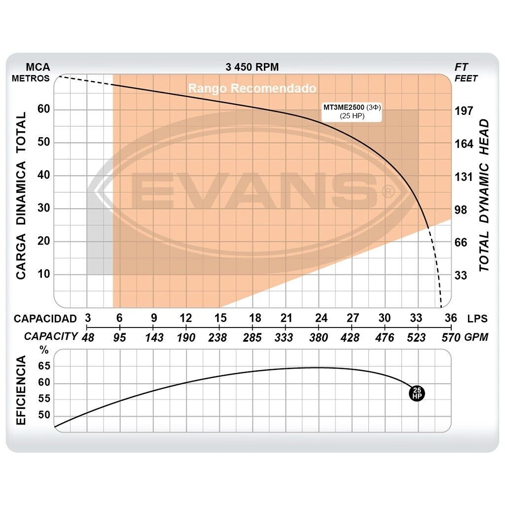 Bomba Centrifuga 25Hp Trifasica 3X3 220/440 Siemens Alta Presion Y Alto Flujo, 3450 Rpm, Marca Evans