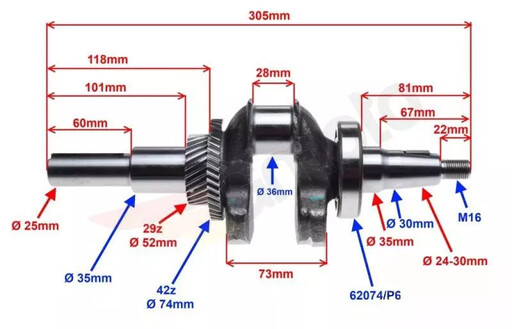 Cigueñal Honda Cuñero Corto 305 Mm Gx390 117X35X25X7Mm