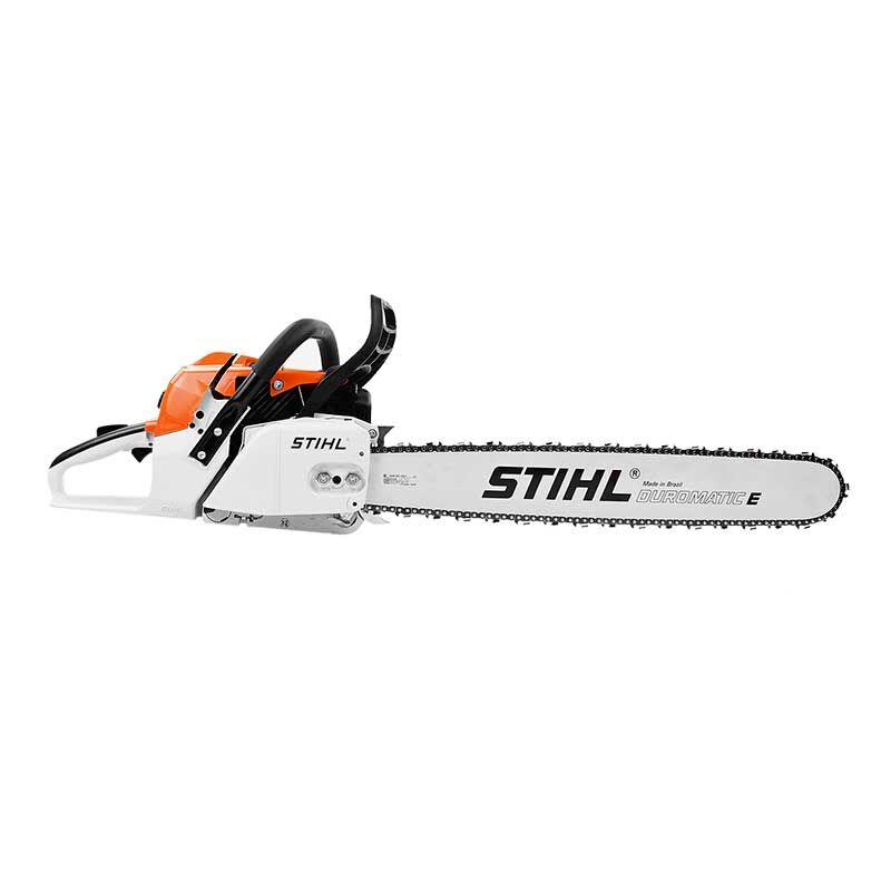 Motosierra de uso intensivo para corte forestal de árbol mediano y silvicultura, cuenta con sistema ElastoStart y válvula de descompresión, freno de cadena QuickStop de activación automática, mando confortable unificado multifuncional para el arranque, servicio y parada del equipo, sistema de filtro de larga duración con compensador y cierres de depósitos accionables sin herramienta.