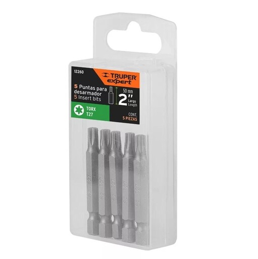 Estuche Con 5 Puntas Torx T27 Largo 2 , Truper Expert