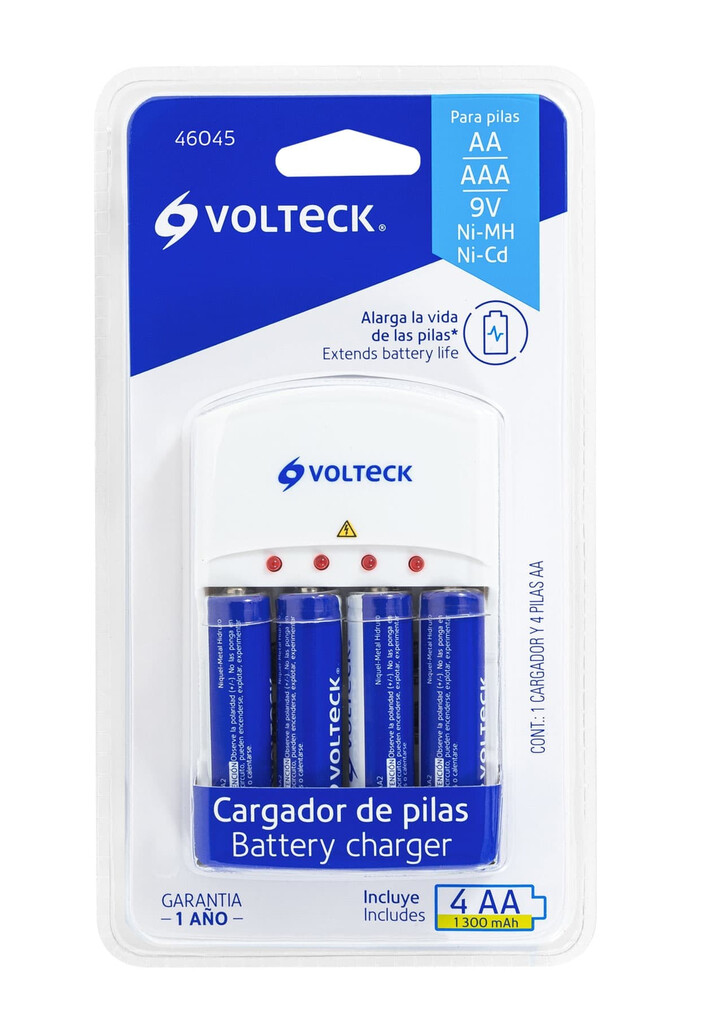 Cargador De Pilas, Aa, Aaa Y 9V, Incluye 4 Pilas Aa, Volteck