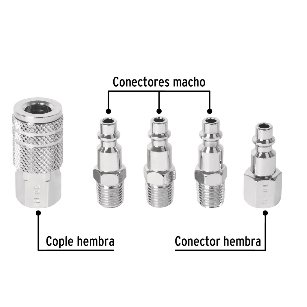 Juego 4 Conectores Y 1 Cople Para Compresor, Pretul