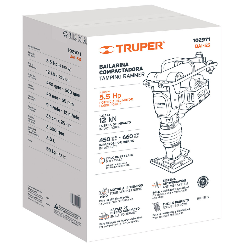 Bailarina Compactadora 5.5 Hp, Motor Honda Gx160, Truper