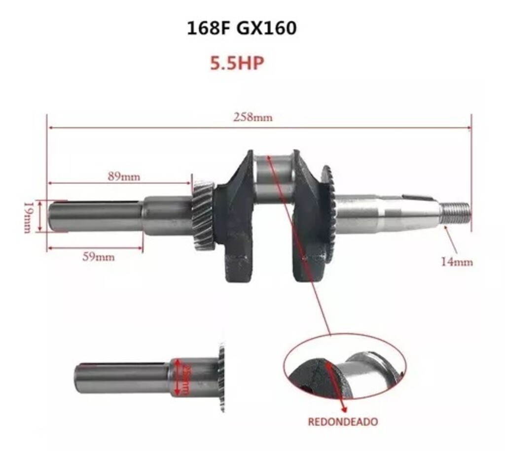 Cigueñal Gx160 Flecha Cuña 3/4" 19Mm - Largo 258Mm - Cuerda 14Mm