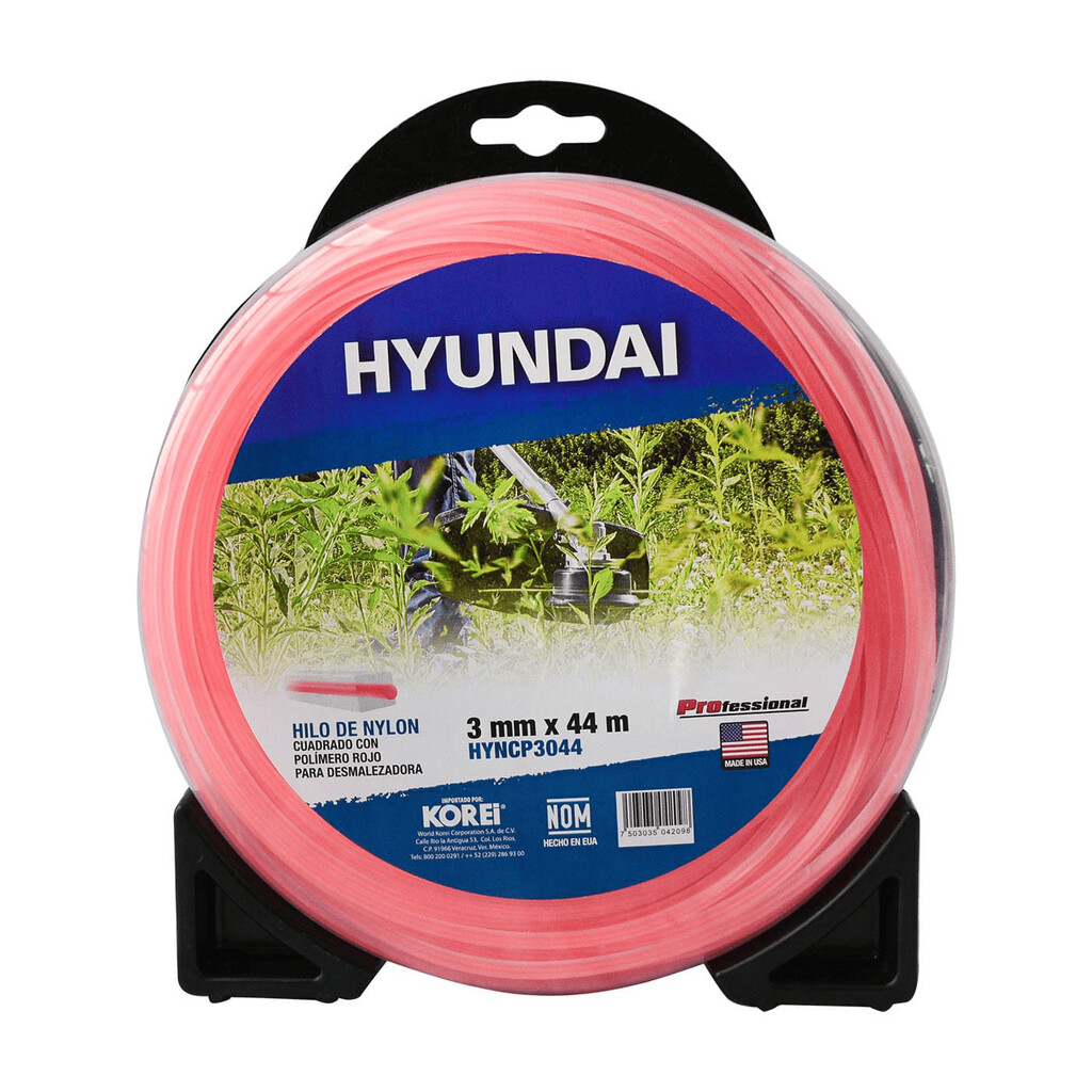 Hilo Nylon Hyundai Cuadrado 3Mm - Rojo 44M