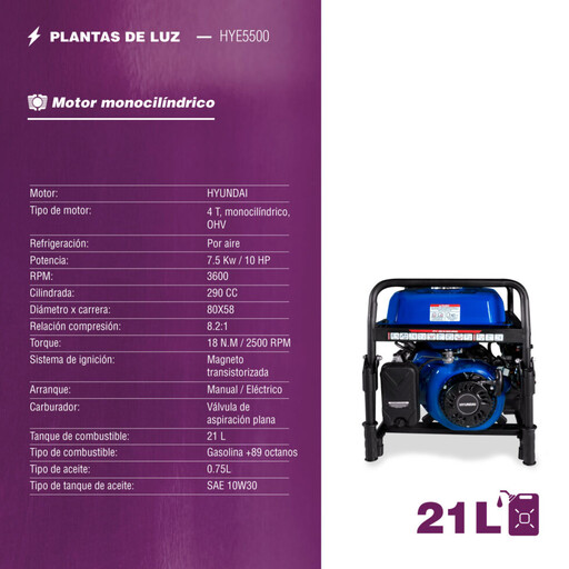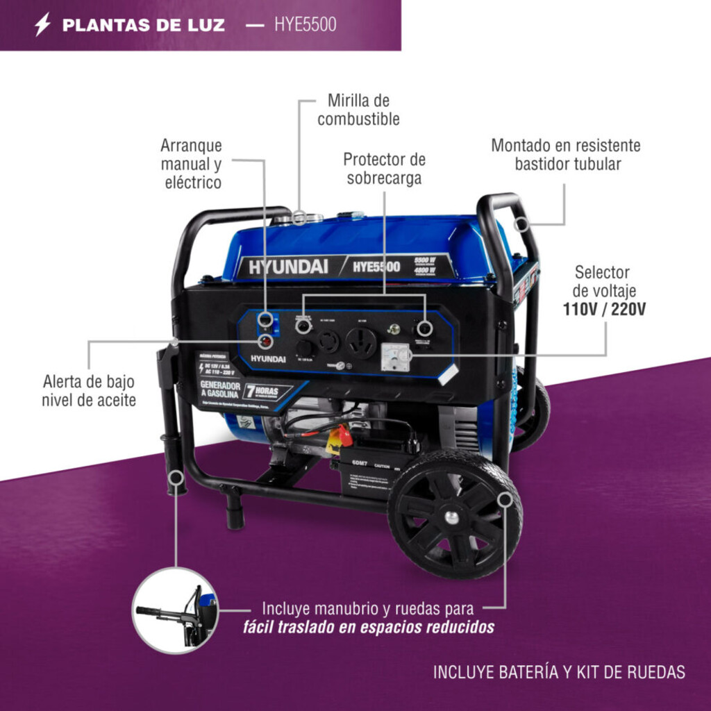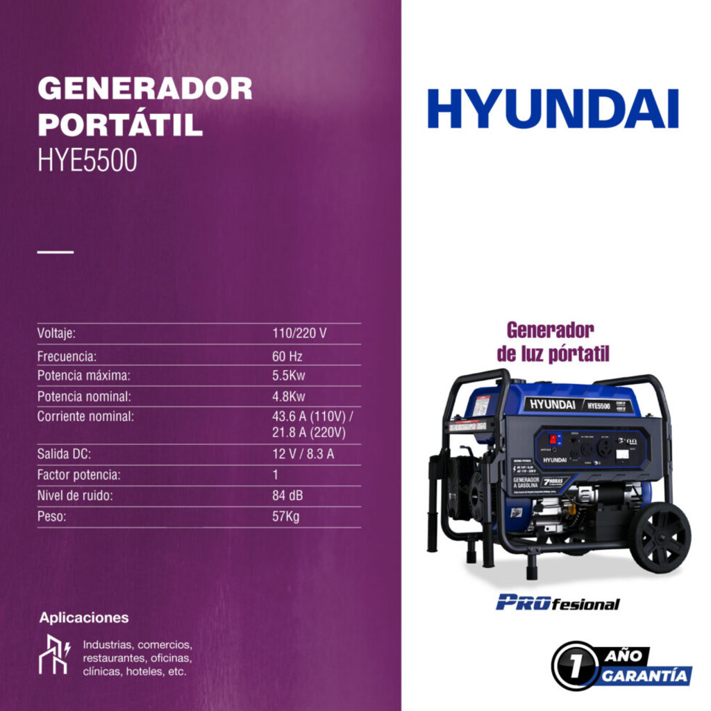Generador Profesional Hyundai A Gasolina 4.8Kw 10Hp