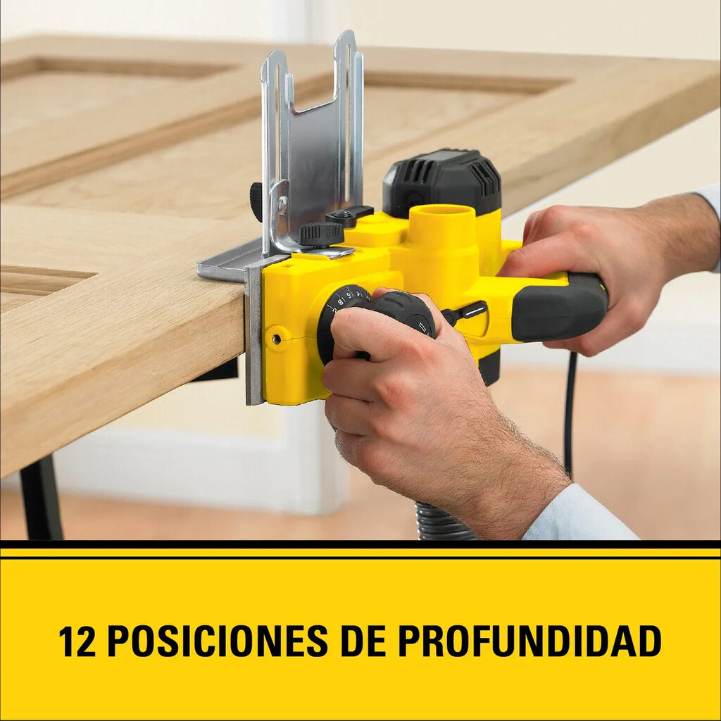 Poderoso motor de 750W para óptima remoción de material, Tres ranuras de diferentes tamaños en la base para un achaflanado fácil de los cantos, Profundidad de corte de hasta 2mm para mayor precisión