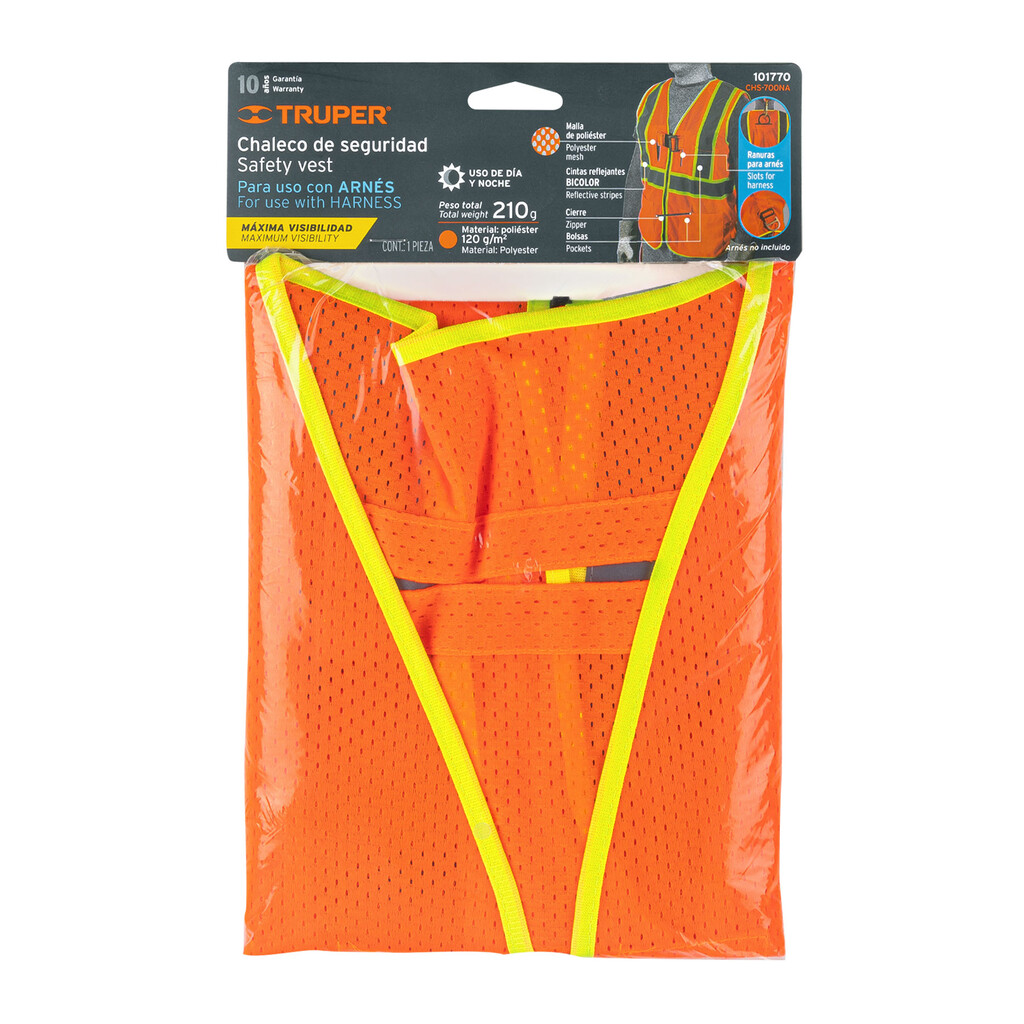 Chaleco De Seguridad Para Arnes, Alta Visibilidad, Naranja
